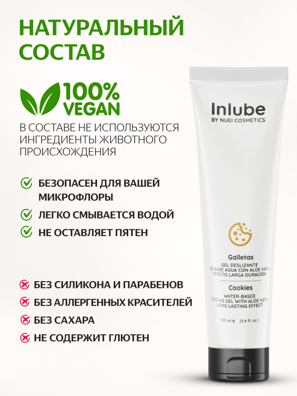 Гель на водной основе с ароматом и вкусом печенья "Nuei Inlube Cookies" с алоэ вера, 100ml