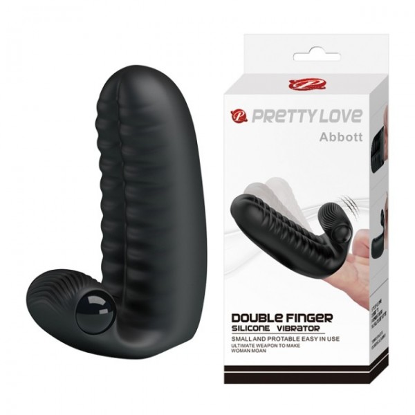 Насадка на два пальца с вибрацией "Pretty Love Abbott" рельефная, черная
