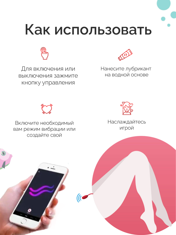 Если, использовать виброяйцо без приложения, в Вашем распоряжении 7 разнообразных режимов вибрации!